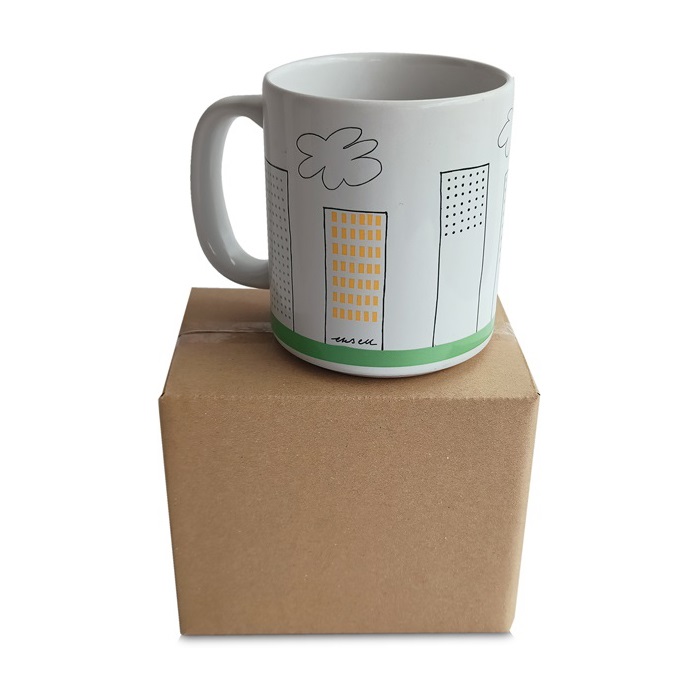 A small coffee mug size packaging box. Price for 50 boxes. Designed as a shipping box for small items similar to the size of a cup.
